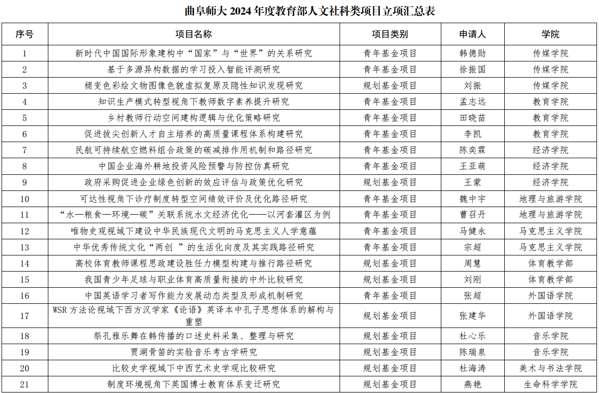 名列全国高校第8位 曲阜师大教育部人文社科项目立项取得重大突破