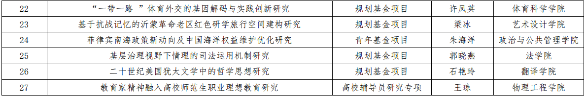 曲阜师大社会科学处讯  近日,教育部社科司正式公布了2024年度教育部人文社会科学研究项目立项名单,曲阜师大共27个项目获批立项,一般项目立项总数并列全国高校第8位,立项总数创历史新高。